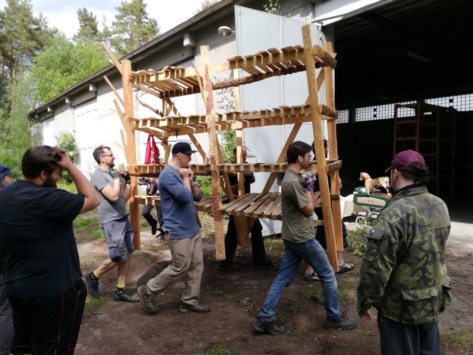 Stěhování skladu sice není akce pro veřejnost, ale byla to ve výsledku největší akce roku 2020. V bývalých kasárnách nám skokově zdražili nájem více než čtyřnásobně, což absolutně nebylo ve finančních možnostech spolku. Museli jsme se proto rychle poohlížet po novém prostoru, což nebylo vůbec nic jednoduchého. Potřebovali jsme 300m2 plochy na uskladnění všech našich kostýmů, kulis, rekvizit a materiálu. V nejtěžší chvíli nám podalo pomocnou ruku město Rožmitál pod Třemšínem, které nám dočasně nabídlo svoje prostory v bývalých kasárnách. Nakonec jsme se domluvili se spolkem Zámek Rožmitál a uzavřeli nájemní smlouvu na prostory přímo na zámku.